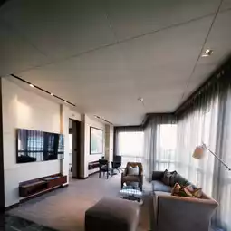 When I walked into the suite, I was instantly shocked by the scene before me. The spacious and bright space and exquisite decoration style, every detail demonstrates quality and luxury. The living room is decorated in a very grand style, with a soft sofa matched with a simple coffee table, and there are oversized floor-to-ceiling windows that offer an unobstructed view of the beautiful city scenery of Shenzhen. During the day, you can see the bustling streets with heavy traffic; at night, the lights come on and the sea of neon lights is romantic and charming.