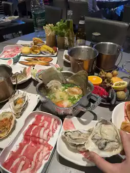 Highly Recommended!!! The Australian blue lobster is incredibly juicy and tender (the only seafood restaurant in Shenzhen offering unlimited supply). Normally, a pound costs $9X. There are also various types of Japanese sushi and sashimi, famous for their large and sweet fresh oysters. The best part is the unlimited Thai golden pillow durian, which is fragrant, sweet, and irresistible. Additionally, there are freshly cut Chaozhou beef slices, steaks, lamb chops, and more. After selecting your seafood, you can enjoy a hot pot with individual pots for hygiene. The hot pot broth comes in both spicy and non-spicy options, with every sip infused with the essence of seafood. All the seafood is fresh, sweet, and large, making it truly worth the price.