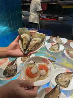 Today, I visited a popular seafood buffet in Shenzhen. The place is huge, offering over a hundred different dishes. For just $2XX, you can enjoy a wide variety of fresh seafood, including abalone, hairy crabs, mantis shrimp, three-spot crabs, queen clams, and white clams, all freshly caught and cooked on the spot!