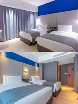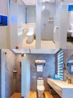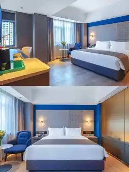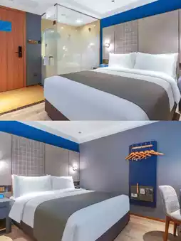The room is warm and comfortable, the bedding is soft and skin-friendly, and the mattress is moderately firm. Lying on it instantly heals you and relieves the fatigue of a busy day. The room is also well soundproofed, so you can sleep well at night. The smart devices are complete, and you can control the lights and air conditioning with your phone, which is very convenient. The bathroom is dry and wet separated, and the toiletries are of good quality. You will feel refreshed after taking a shower.
