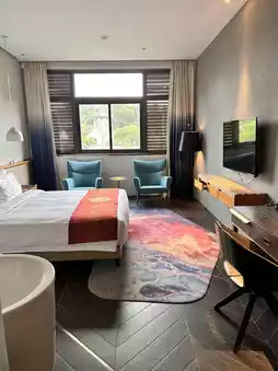 🤩 The hotel is in the Hakka Town of Gan Hang, Shenzhen. The hotel is in the ancient town, it feels very leisurely and the neighborhood is very antique. Although it is antique, it has a very design-like art theme🥳🥳