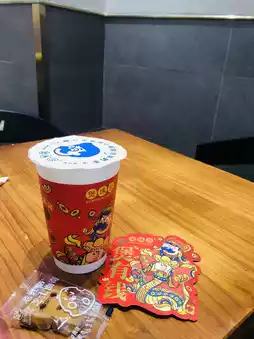 This time I went to KK time B1 floor and chose this tea shop Baozhugong. I saw that it had a very New Year 🧧 atmosphere and was very attracted so I walked in to buy a cup of tea. This time I drank a cup of hot green tea 🍵 It was really a surprise and a good choice. The tea fragrance was very sweet and the taste was very rich. First of all, there would be a small red envelope during the New Year 🧧 There was actually one dollar in it and a piece of cake. It was a surprise. In addition to this, this shop is famous for pearls. You must try it next time 🥳🥳🥳