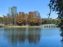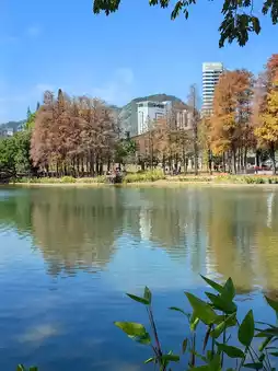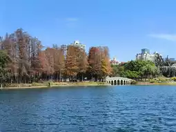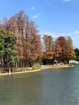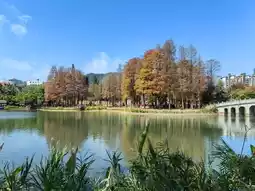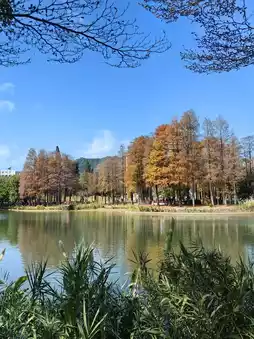 The yellow bald cypress trees are located in the quiet Shekou Sihai Park.