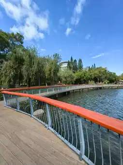 Sihai Park covers a large area, with water accounting for about half of the park, and the water quality is very clear. The park is full of green trees and the lake is rippling.