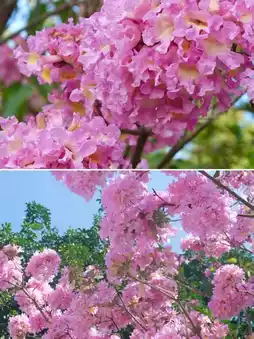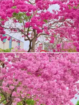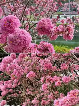 * **Golden trumpet trees** are not to be outdone, with golden flowers hanging all over the branches, like strings of wind chimes swaying in the spring breeze, playing the melody of spring.