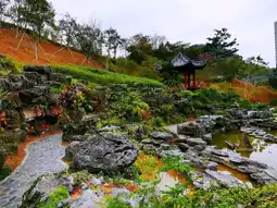 Walking along the plank road up the mountain, when you reach the top, you will see several pavilions; looking in the direction of Longhua Senior High School, you will find that there are ancient buildings with full charm at the foot of the mountain.
