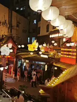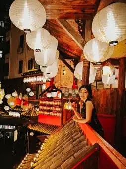 This hot pot restaurant in Shenzhen's Nanshan District stands out not only for its ancient-style architecture but also for offering makeup and costume experiences for photo ops. However, I didn't take advantage of the makeup and costume services that day because I had just finished a photo shoot at one of Nanshan District's studios. My private cheongsam fit right in without any sense of incongruity.