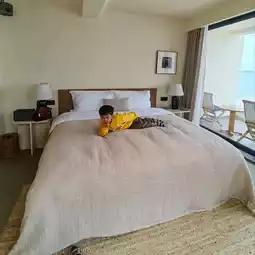 In addition to the balcony with a hot tub, the room also has a bathtub