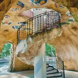 This art tower was built in Spanish style. The tower body is like a conch 🐚, and the exterior walls are made of natural stones and red bricks. The stairs and the spire are inlaid with colored tiles, which form various patterns. It is colorful and full of exotic style❗️I can't believe that such a beautiful art tower is hidden in this niche park!