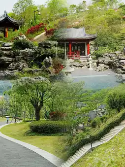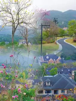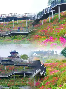 Stroll along the winding plank road, with the Nine-Curve Flower Path full of blooming flowers on one side, and the mountain top viewing platform on the other. It only takes 10 minutes to walk to the top, where you can see the European-style villas. The Chinese-style ancient pavilions along the way add a touch of elegance to the mountains and forests. The S-shaped curve of the park is also very interesting, with a wonderful blend of Chinese and Western styles. On the left is the stylish villa area, and on the right is the gentle Suzhou-style garden, instantly giving you a unique background.