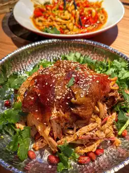 The name is quite bold! The chicken is torn into strips, soaked in red oil, with a perfect balance of numbness and spiciness. The initial taste is fresh and fragrant, followed by a spreading spiciness. The sesame aroma adds layers of flavor, making it more delicious with each bite.
