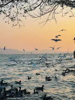 Standing on the shore and watching the seagulls playing, I felt extremely peaceful and happy in my heart.