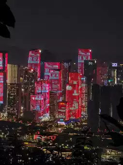 Wait for about 40 minutes on the viewing platform, and continue to watch the night view after dark. You can see the Spring Bamboo Building and other buildings.