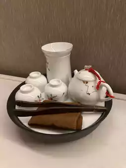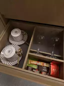 On the other side is a small cloakroom, easy to place and store items ~ refrigerator has free drinks provided 🥤 There are also coffee ☕️, tea bags provided, better is there are tea sets and big red tea leaves, love to drink tea can enjoy a cup of tea 🍵