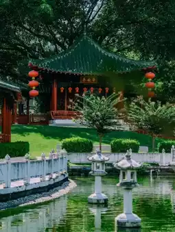 The park is located in the bustling area of Huanggang Village, Futian, Shenzhen. The park's pavilions and corridors, green tiles and red corridors, are built around the lake, and the carp in the lake is the finishing touch.