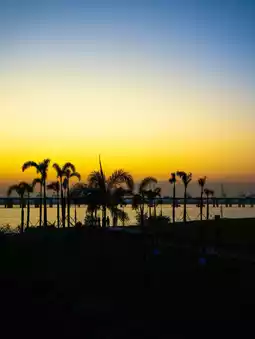 Palm trees, the sea, a Ferris wheel, and a beautiful sunset...