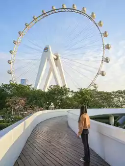 A huge Ferris wheel 🎡 and a shopping mall with many shops and restaurants