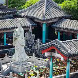 ✅Statues of saints: Yue Lao 🙏 sits under the marriage tree, Master Miao Shan 🙏 is located in the lotus pond, and there is a Tai Chi hall next to the statue of Pan Ji 🙏.
