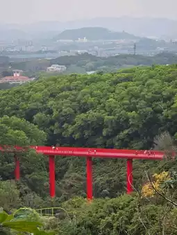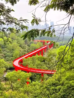 Hongqiao Park, located in Guangming District, Shenzhen, China, is a suburban park that integrates leisure, fitness and natural landscape. The park is shaded by green trees🌳, with beautiful lake and mountain scenery🏞, making it an ideal place for residents to relax and go on outings. The park’s famous landmark is a 4.3-kilometer-long red elevated walkway called the Rainbow Bridge. Walking on the winding and undulating Rainbow Bridge, bypassing the green lake and water, passing through the emerald green mountains and forests, climbing up the observation tower and overlooking the Rainbow Bridge that looks like a red ribbon is extremely refreshing. There are various recreational facilities in different parts of the park, suitable for tourists of all ages. There is also a viewing platform and a casual coffee shop beside an artificial lake in the park, where visitors can enjoy the beautiful lake view and the surrounding mountain landscape while sipping coffee. They can also check out the contemporary art installations. Hongqiao Park is not only a leisure resort, but also an important part of the ecological environment of Guangming District. Although it is far from the center of Shenzhen, it is worth visiting for most of the day.