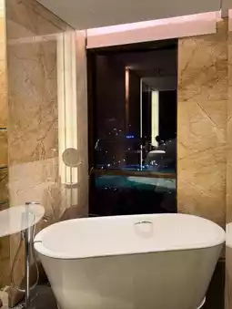 We stayed on the 27th floor in an open-plan king room, 60 square meters, with a high ceiling that gives a spacious feel! I especially loved the private bathtub for a relaxing bubble bath🛀.