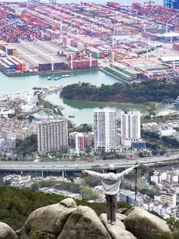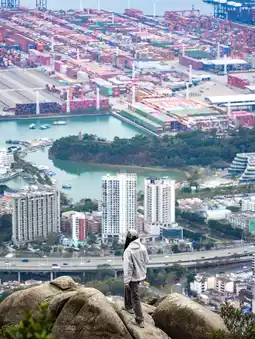 Standing on the top of the mountain, you can overlook the entire Yantian Port.