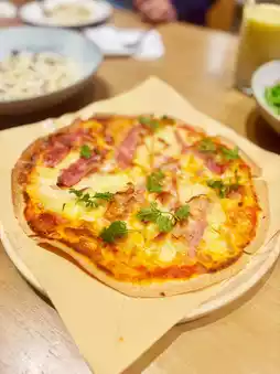The Pineapple Bacon Pizza had a crispy crust, paired with sweet pineapple and savory bacon, showcasing the creativity of Western cuisine.