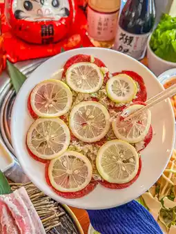The roasted lemon is slightly sour. The beef tongue is very chewy. The taste is amazing when eaten together. The taste is rich.