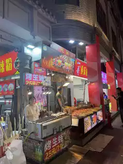 Dongmen Pedestrian Street in Shenzhen is renowned for its vibrant street food scene, offering a diverse array of local delicacies. Among the most popular offerings are oysters and mala (spicy) dishes.