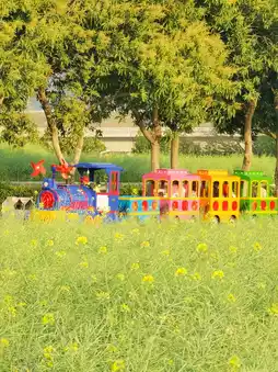2. There are small trains running through the park, and with the background of a sea of flowers, it feels like a fairy tale world.