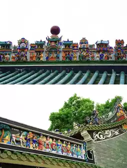 3. Yide Hall Shajing Chen Clan Ancestral Hall/Jiang Clan Ancestral Hall: Built in the Cantonese architectural style, the carved decorations on the roof of the gatehouse are exquisite.