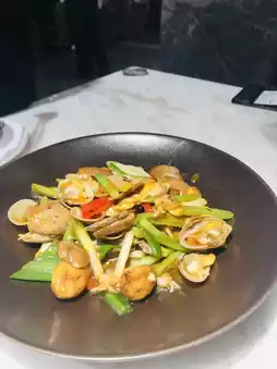 I really like to drink tea in this shop🫖But this time I ordered small dishes for dinner instead of dim sum🥧I ordered several small dishes, including a soup dish and a fish belly tofu pot. Of course, I ordered oysters🦪 and abalone, etc. The oysters🦪 were very big and meaty, and the abalone was very chewy. I also got a bowl of mango🥭sago for free when I checked in. The seats were spacious and comfortable