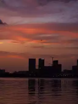 Whenever the sun sets, the sky is dyed orange and red, and the magnificent sight is intoxicating. The fiery clouds are layered like a dream.