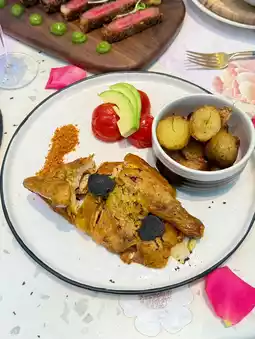 The three-yellow chicken has tender meat, moderate fat and is extremely delicious. There are also side dishes of tomatoes, avocado, etc. It's so rich.