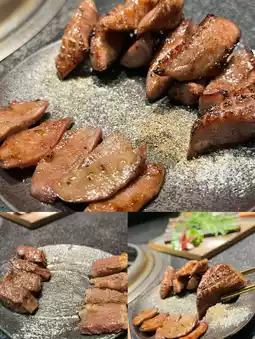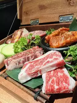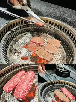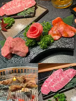 a variety of high-quality meats; including thick-cut beef tenderloin (original), thick-cut beef tongue (flavor), beef ribs (fruit sauce), snowflake beef ribs (garlic), thick-cut diaphragm;