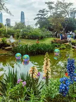Spring is back and everything is renewed. I love the spring in Shenzhen so much, with birds singing and flowers blooming everywhere, it is beautiful and healing. The rose exhibition in People's Park arrived as scheduled. Walking into the park is like walking into a painting. There are large fields of roses, with warm red, delicate pink, pure white and lovely yellow. The layered petals are so beautiful that they are stunningly beautiful. There are hydrangeas, daisies and other different varieties of flowers decorating both sides of the stream. From time to time, steam will be emitted, smoke will be lingering, and colorful bubble balls will be dotted among them. It is like a dream, like a fairyland, and it is perfect for little fairies to check in.
