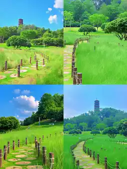 1. Green Meadow: The vast green meadow is one of the park's highlights, resembling a scene straight out of a Studio Ghibli film. It's an ideal spot for photos or simply enjoying the scenery.