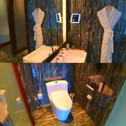 Located at Exit F of the Grand Theater, five minutes walk 👏👏👏👏. The hotel lobby is designed with floor-to-ceiling glass, which is very bright 😍😍😍! The room is very large, with a six-foot bed, moderately soft and hard 👍👍👍, there are light switches and plugs on both sides of the bed 👍👍👍, there is a comfortable single sofa by the window 😍😍. The bathroom is very luxurious with marble 🥰🥰🥰, with a smart toilet. There are all kinds of room supplies. 👍👍👍👍