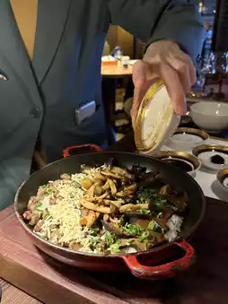 Hot stewed rice, very fragrant beef liver mushroom flavor, with the rich aroma of black truffle brings out a luxurious feeling