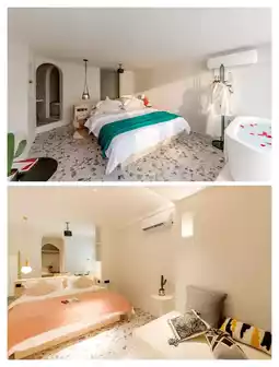 I have always longed for the beach in Santorini. 🍗🍖🍂🌾🍁The white cottage and the blue of the sea and sky are so refreshing, just like a healing color scheme♥❤🌺. No wonder I was attracted to this B&B at first sight. It turns out that you can have the same beautiful scenery in Shenzhen! 🥎🏬🏦