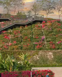 You can see a large field of colorful bougainvillea from a distance [Love]