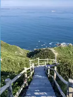 In the early morning chill, I drove to Dapeng Peninsula. The winding mountain road, like a verdant ribbon, gradually unfolded the poetry of nature. Upon arrival, the azure sea came into view, blending seamlessly with the sky, creating a serene and distant scene that took my breath away. I hiked along the coastline, the fresh breeze carrying the salty scent of the sea, while the gentle whispers of waves lapping against the rocks filled my ears. The secluded bays seemed like harbors of time, with fishing boats swaying and distant mountains undulating like a painting. At Dapeng Fortress, the weight of history was palpable, with cobblestone streets and ancient walls bearing witness to the land's vicissitudes and glory. In the afternoon, I climbed a hillside to take in the panoramic view. The peninsula shimmered under the sunlight, with green and blue interweaving into a gentle rhythm. At that moment, I deeply felt the perfect blend of nature and culture on this land. Dapeng Peninsula, with its unique charm, awakened a sense of tranquility and beauty within me.