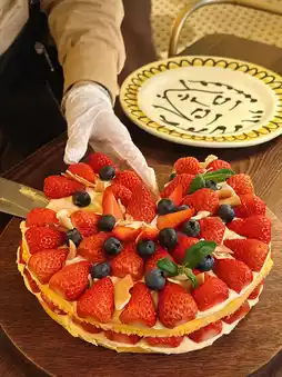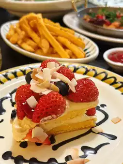 The clerk brought out the whole cake and cut it right away, which was full of ritual. The two layers of the cake were covered with big strawberries. Dessert lovers can't miss it!