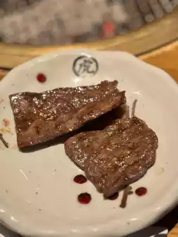 Compared to the marinated version, this one is more original in flavor, with evenly distributed fat. After grilling, the meat aroma is intense. A simple dip in a bit of yakiniku sauce is enough for a high-quality wagyu experience!