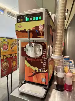 The self-service ice cream machine offers several flavors, with milk flavor being the most recommended, rich and smooth, a perfect dessert after grilled meat!
