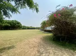 The surrounding environment is beautiful, with green trees and flowers everywhere