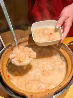 Don't miss the clay pot porridge, especially the [Sea Shrimp and Dried Scallop Clay Pot Porridge]. The generous amount of sea shrimp and dried scallops make the porridge rich and flavorful, with perfectly cooked rice grains that are smooth but not sticky. The dried scallops melt in your mouth, adding an extra layer of sweetness that makes it hard to stop eating.