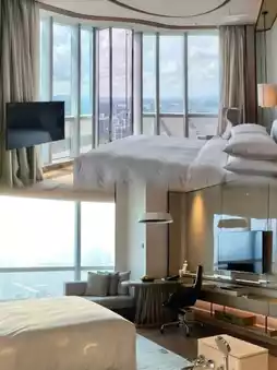 The hotel has 340 comfortable and luxurious rooms and suites. The rooms are located on the 45th to 60th floors. The rooms are spacious and bright, with complete modern facilities. The 270-degree floor-to-ceiling windows have an excellent view, with a panoramic view of Shenzhen Bay and the city scenery.