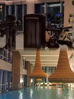 The hotel has entertainment and leisure facilities such as an indoor heated swimming pool, a gym, a spa center, and there are also heated pools and saunas in the locker rooms.