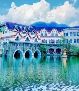 • Features: European-style town, Swiss architectural replicas, lake and mountain scenery, hot spring resort