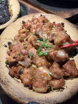 The chicken pieces are firm and juicy! The chicken skin is crispy with charred flavour!
